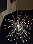 [UPGRADE 200 BULBS + More BRIGHTNESS LEVELS]: The LED starburst string lights have 5 LED bulbs on each copper wire. The sphere string light has 200 LED bulbs. Starburst lights have 8 flashing modes (including a steady state mode) and 10 adjustable brightness levels [TIMING FUNCTION + REMOTE CONTROL]:The starburst fairy lights can be set to automatically turn on for 6 hours and turn off for 18 hours. You can also use the remote control to turn the starburst fairy twinkle string lights on or off from afar or choose the mode you like. These starburst light's effective receiving range is 10 meters. Whether the light is indoors or outdoors, the starburst light fixture string lights can be convenient to use [BATTERY POWER + ENERGY SAVINGS]:The copper wire fireworks lights need 4 AA batteries,battery hanging light get rid of the socket control, you can put it wherever you need it. The starburst lights christmas uses the low-calorie,cold-light bulb, which does not generate heat for a long time and consumes very little power. The light life is over 10,000 hours [DIY SHAPE FUNCTION + OUTDOOR WATERPROOF]:Sphere string lights are made of 40 strands of high-quality flexible copper wire, which can be easily bent into any shape you like, such as: bouquets, fireworks, and star shapes. The hanging fairy lights are IP67 waterproof, the battery case is IP65 waterproof with hooks on it. They are perfect to use in the garden, on the patio, in dim hallways, as Christmas tree lights, in the living room, in the bedroom, in the tent, for weddings, for parties, etc [HIGH-QUALITY MATERIALS]:These Hanging starburst lights are made with a smooth copper metal head (similar brands have plastic heads), high quality flexible copper wire (8.7 in), a waterproof LED bulb (1.5 times brighter than ordinary bulb), a waterproof battery box, and a hanging wire up to 35in. These lights are quality, convenient, and durable