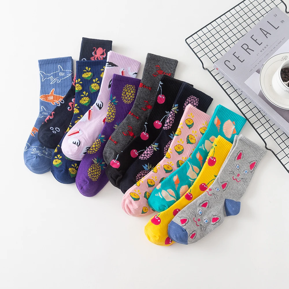 1 пара женских носков, хлопковые крутые фруктовые рыбные носки, милые женские носки для влюбленных, 36-43EUR