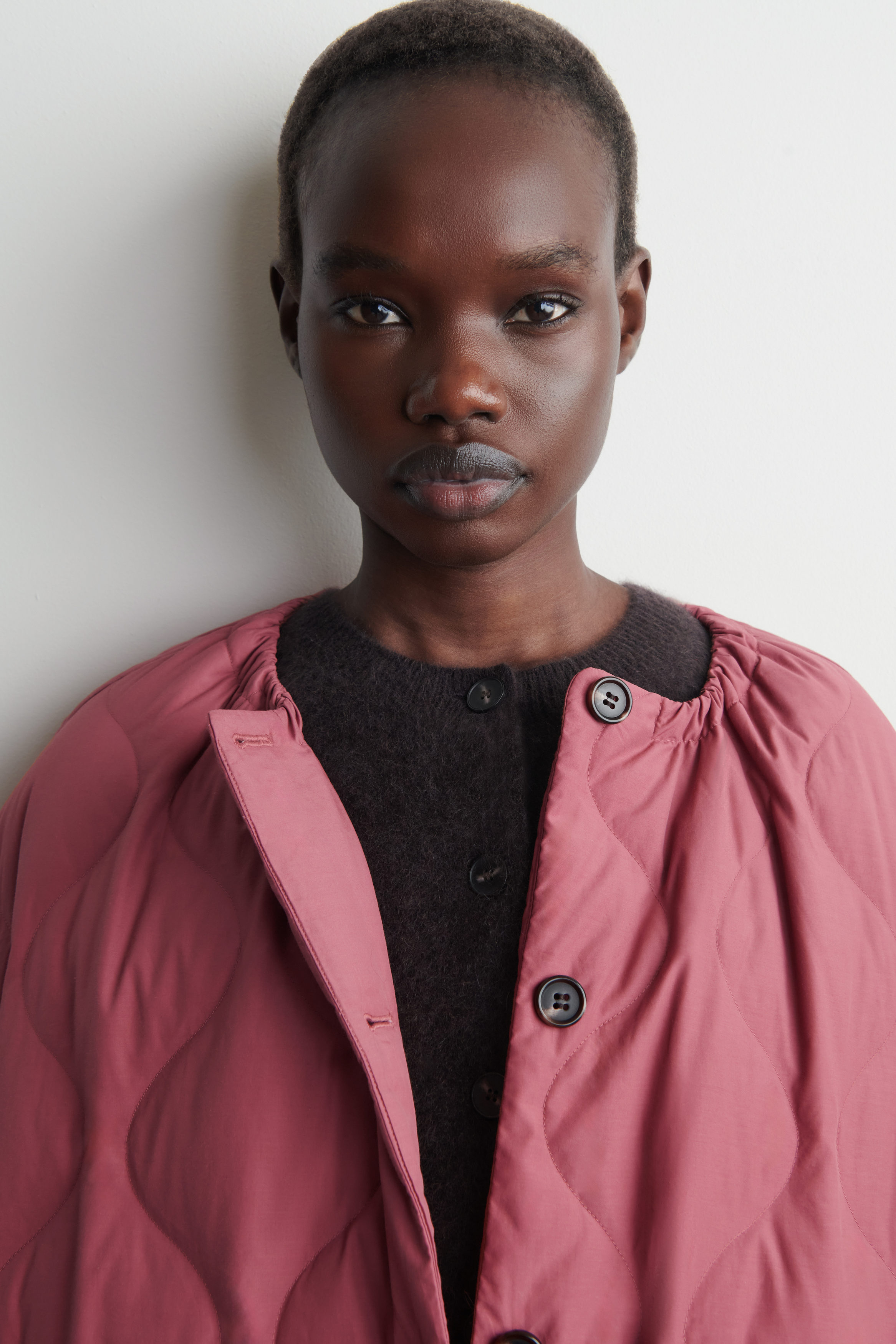 Thisseason,theCOSdesignersreframethequiltedjacketthroughamodernlens.Thisdelicatelygatheredlinerismadefromnylonandcottonthat'slightlypaddedwithdownforcomfortandwarmth.Theelasticatedhemenhancestherelaxedshape. RelaxedfitButtonclosureRecycledpolyamideispolyamidemadefromtextilewasteinproduction Shell:59%Recycledpolyamide(Recyclednylon),41%Cotton.Lining:100%Recycledpolyester.Padding:80%Recycleddown,20%Recycledfeather.Excludingtrims/Machinewash BacklengthofsizeSis48cm/ModelwearsasizeS