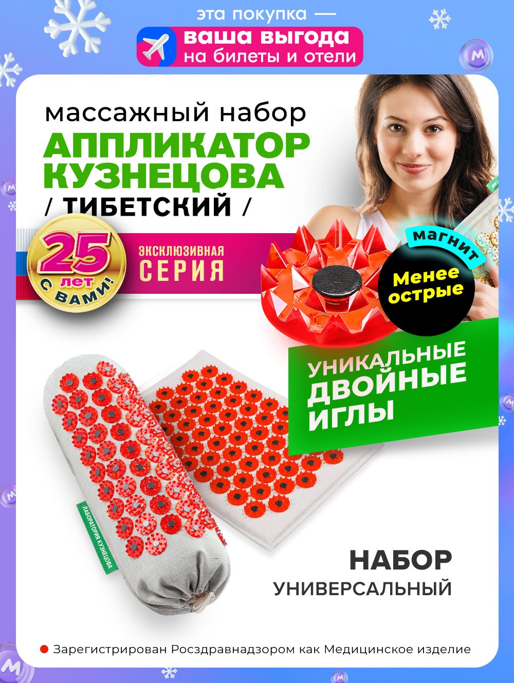 Медицинские массажеры "Тибетский аппликатор" коврик на мягкой подложке, 17х28см + универсальный валик, красный (менее острые иглы, магнитные вставки). Цвет ткани - натуральный лён – покупайте на OZON по выгодным ценам! (1667640962)