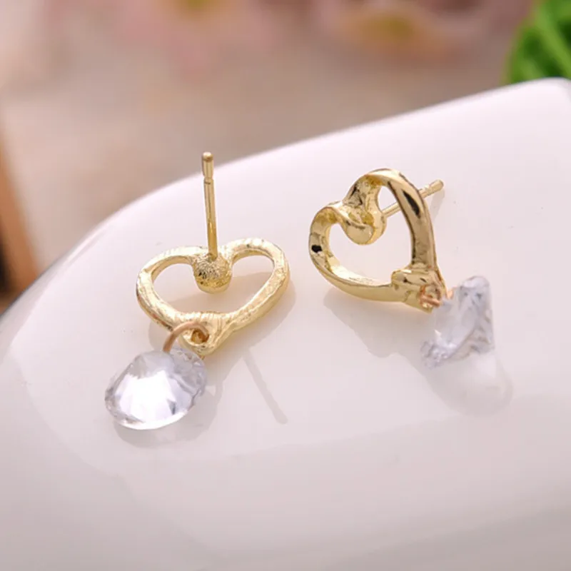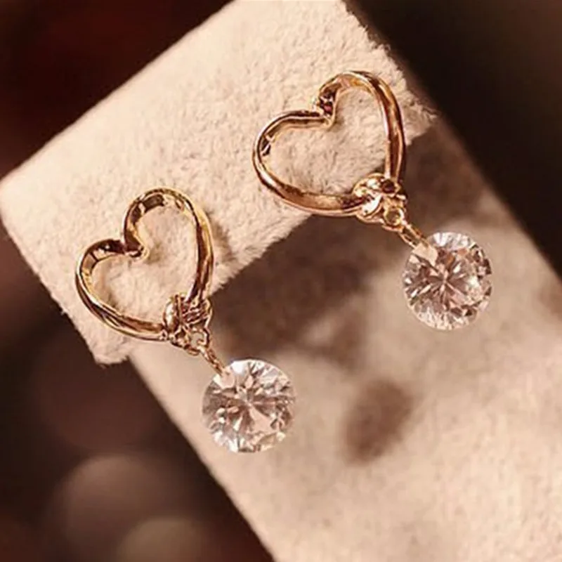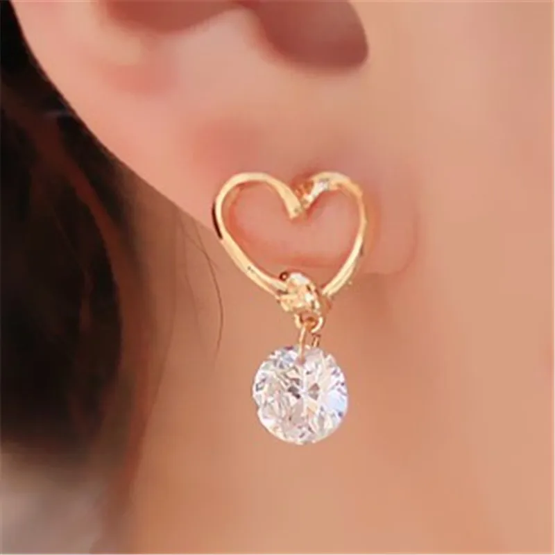 Новая горячая корейская мода Персиковое Сердце Циркон Кристалл серьги гвоздики для женщин ювелирные изделия