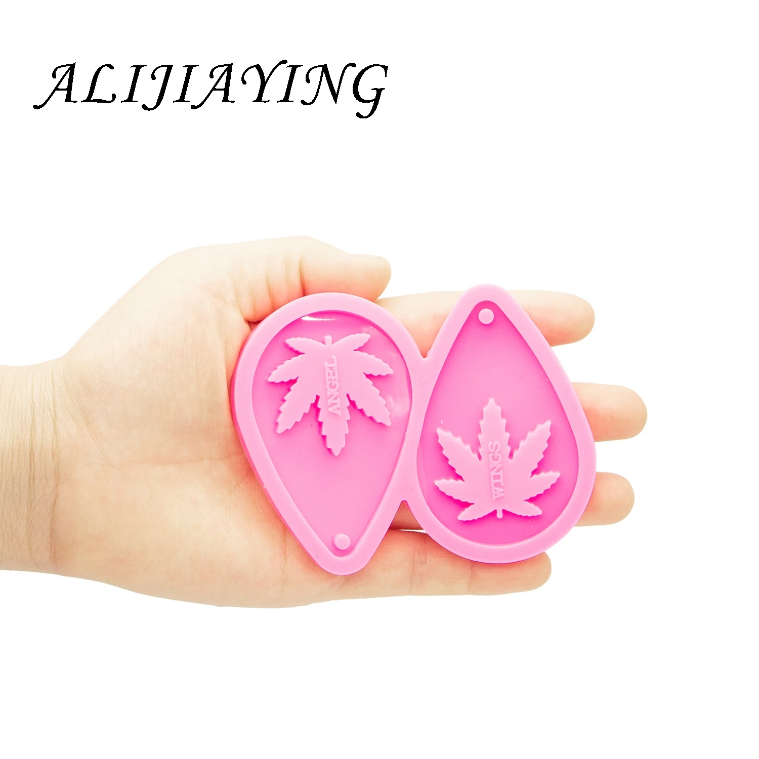 Блестящие серьги-кольца в виде листьев конопляной марихуаны, серьги-кольца из смолы, силиконовые формы для рукоделия, эпоксидная смола для ...