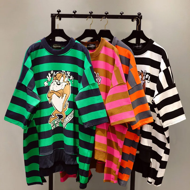 1294.08 руб. 10% СКИДКА|Свободные женские пуловеры с круглым вырезом; топы; сезон весна лето; Новинка; футболки в полоску с короткими рукавами с рисунком; большие размеры; женские футболки-in Футболки from Женская одежда on Aliexpress.com | Alibaba Group