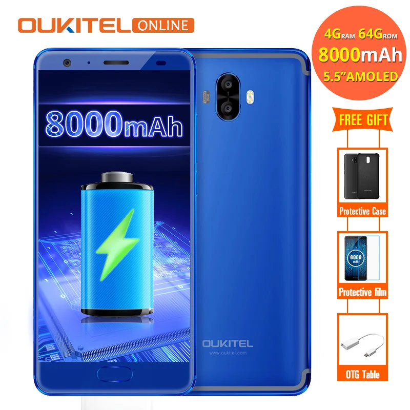 9154.67 руб. |Oukitel K8000 8000 mAh 4G смартфон 4 Гб Оперативная память 64 Гб Встроенная память 16MP + 13MP Android 7,0 MT6750T Octa Core 5,5