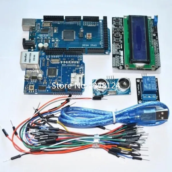 Бесплатная доставка, Mega 2560 r3 для arduino kit + HC SR04 + макетный кабель + релейный модуль + W5100 UNO экран + ЖК экран 1602 клавиатуры|relay module|kit for arduinokit for arduino r3 | АлиЭкспресс