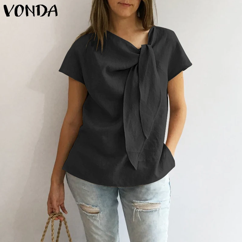 Cheap Блузки и рубашки, Buy Directly from China Suppliers:VONDA женские блузки рубашки 2019 летние винтажные с круглым вырезом короткий рукав рубашки повседневные свободные однотонные топы плюс размер женские блузы Наслаждайся ✓Бесплатная доставка по всему миру! ✓Предложение ограничено по времени! ✓Удобный возврат!