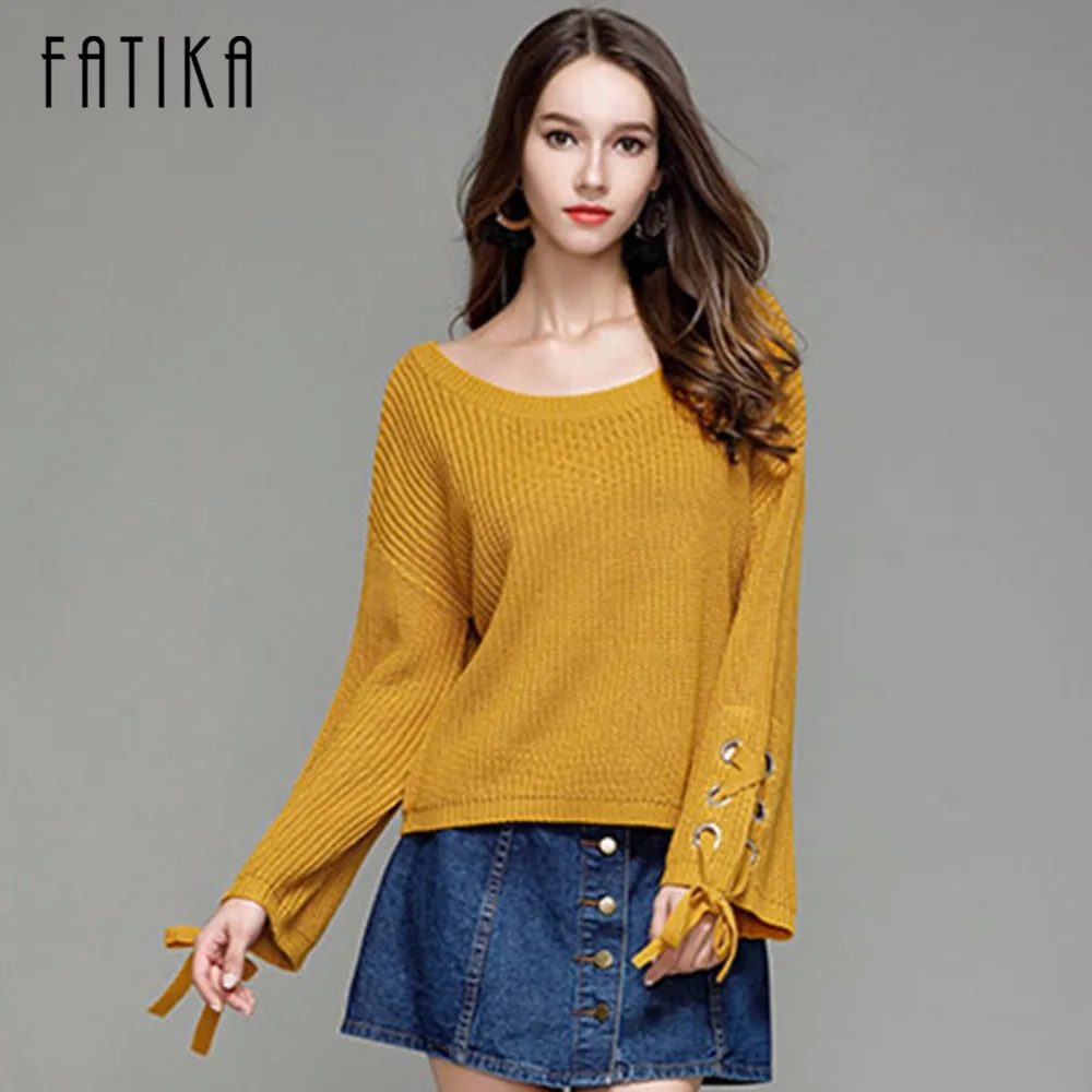 US $16.76 40% OFF|FATIKA 2017 New Fashion Women's Pullover Sweater Women O neck Flare Sleeve Knitted Solid Color Thick Sweaters Loose Coat-in Pullovers from Women's Clothing on Aliexpress.com | Alibaba Group