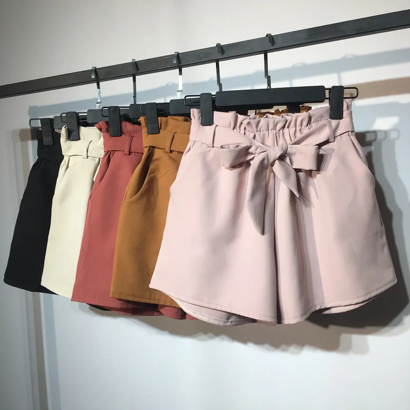 US $12.99 49% OFF|2018 New Summer Autumn Fashion Elastic Sashes High Waist Shorts Women Vintage Wide Leg shorts Solid Thin Bow Female Shorts Mw204-in Shorts from Women's Clothing on Aliexpress.com | Alibaba Group