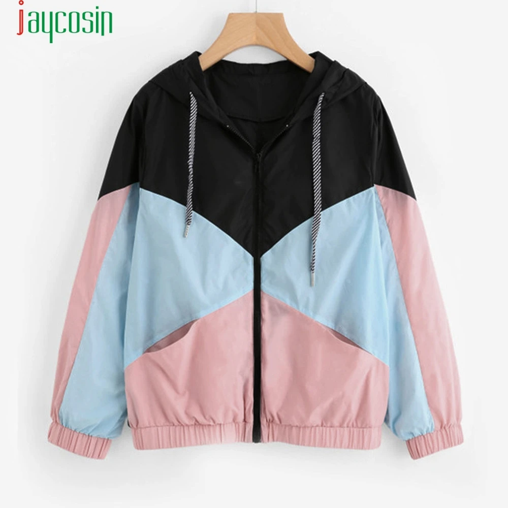 US $10.32 40% OFF|Women Long Sleeve Zipper Pockets Casual Sport Coat multi Color cut and sew windbreaker with hood Color block Coats SE0805-in Basic Jackets from Women's Clothing on Aliexpress.com | Alibaba Group