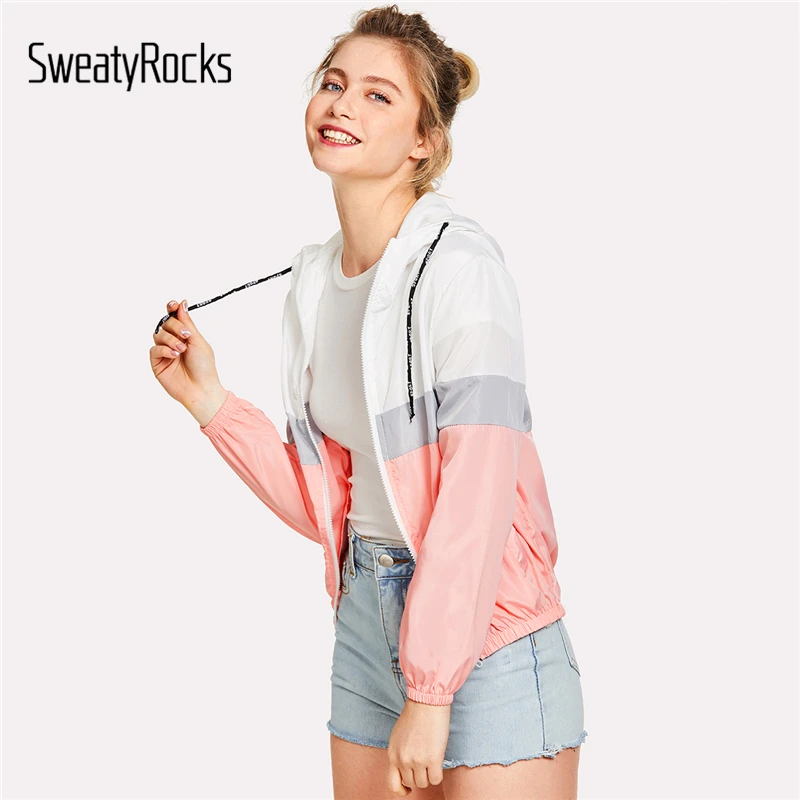 US $12.98 45% OFF|SweatyRocks Color Block Elastic Waist Drawstring Jacket 2018 New Fashion Multicolor Zipper Woman Clothing Ladies Spring Jacket-in Basic Jackets from Women's Clothing on Aliexpress.com | Alibaba Group