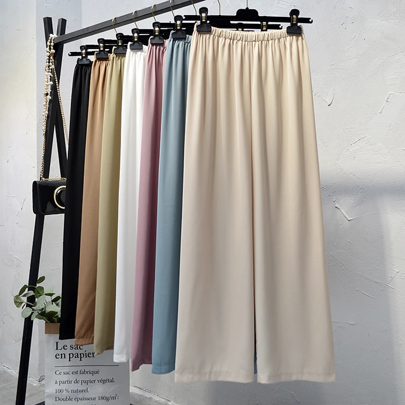 640.18 руб. 30% СКИДКА|2019Women's летние шелковые широкие брюки больших размеров свободные брюки модные брюки с эластичной резинкой на талии колготки женские повседневные брюки-in Штаны и капри from Женская одежда on Aliexpress.com | Alibaba Group