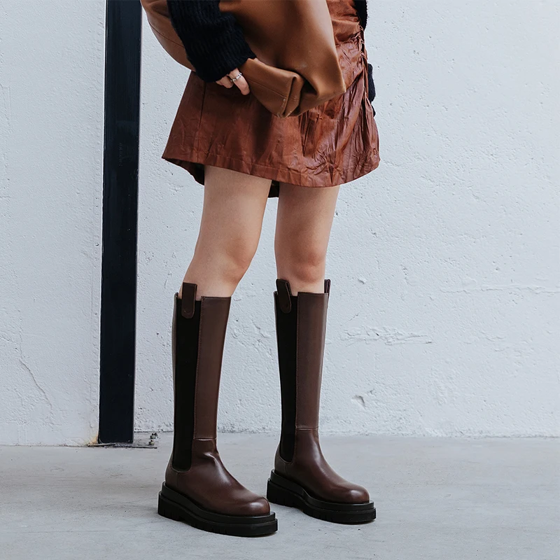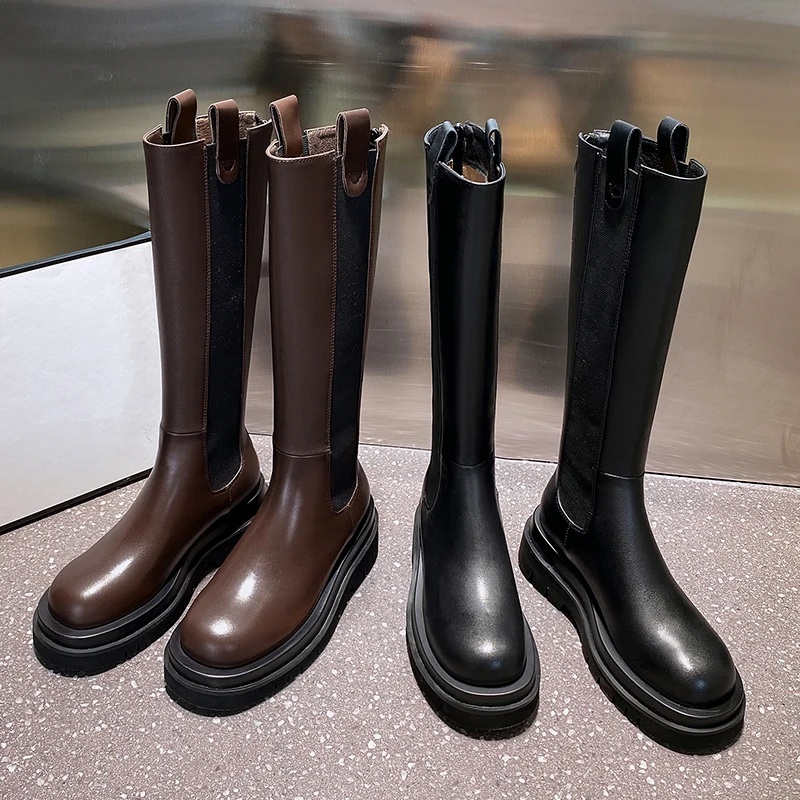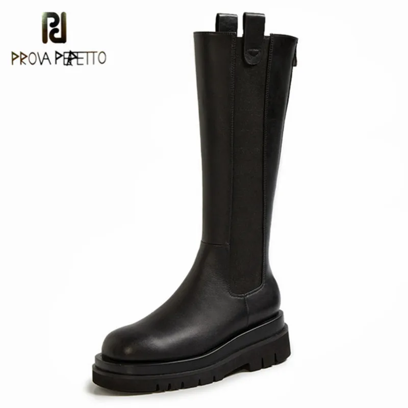 Prova Perfetto/женские сапоги из натуральной кожи; Сапоги с толстой подошвой и молнией сзади; Женские сапоги на плоской подошве; Вечерние сапоги; Модные сапоги до колена|Сапоги до колена| | АлиЭкспресс