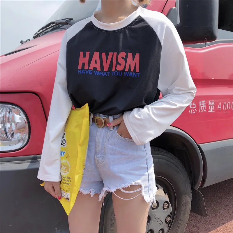 Cheap T-Shirts, Buy Directly from China Suppliers:Harajuku autumn loose letter print t shirt women tops black white spell color long sleeve students T shirts female poleras Mujer Enjoy ✓Free Shipping Worldwide! ✓Limited Time Sale ✓Easy Return.