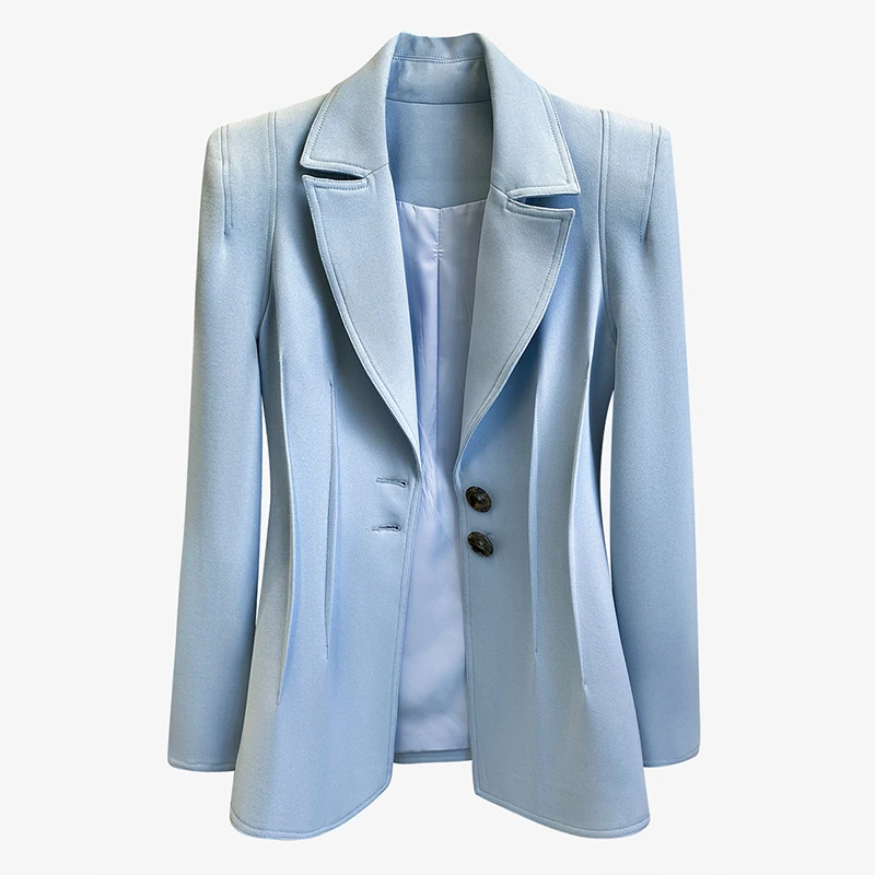 Женский офисный Блейзер Za, синий блейзер с вырезами, корейский однотонный свободный блейзер с длинными рукавами, женская элегантная верхня...