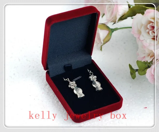 Оптовая продажа, 12 шт./лот, 8x6x3 см, темно-красная бархатная коробка для ювелирных изделий, подвеска, ожерелье, Подарочная коробка, серьги, ювел...