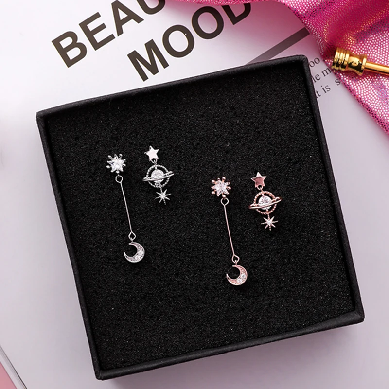 US $2.79 30% OFF|2018 New Design Korean Asymmetric Earrings For Women Trendy Shiny Rhinestone Moon Star Planet Pendientes Cute Girl Gifts Jewelry-in Drop Earrings from Jewelry & Accessories on Aliexpress.com | Alibaba Group