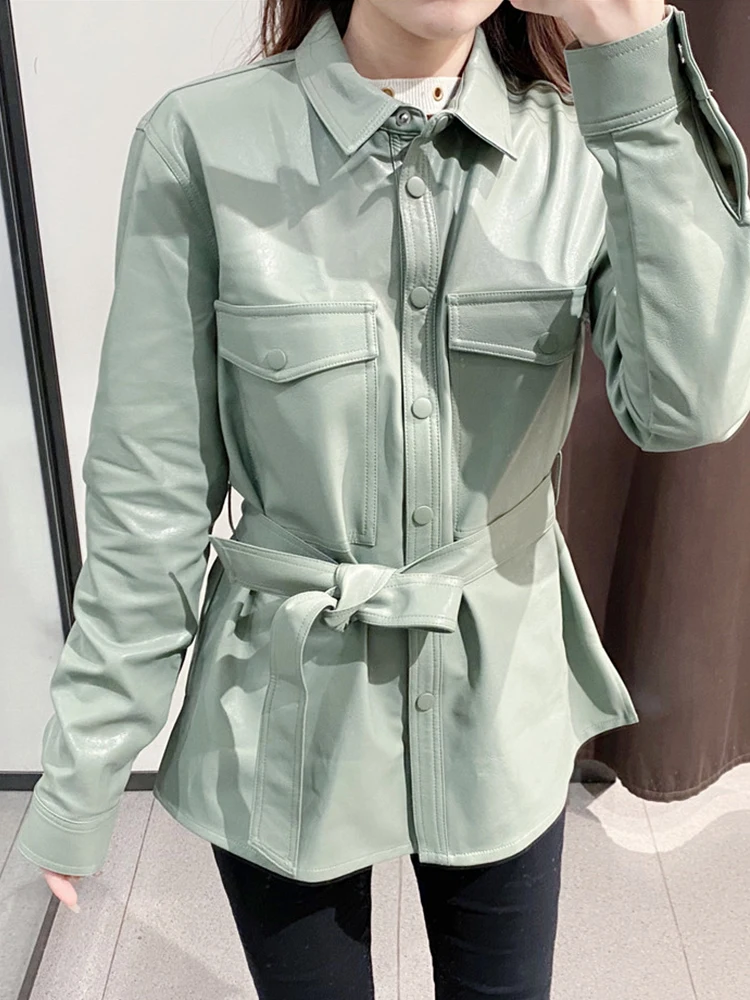 Ailegogo 2020 женская кожаная куртка однобортное повседневное пальто галстук уличная куртка рубашка из искусственной кожи Топы с поясом|Кожаные куртки| | АлиЭкспресс