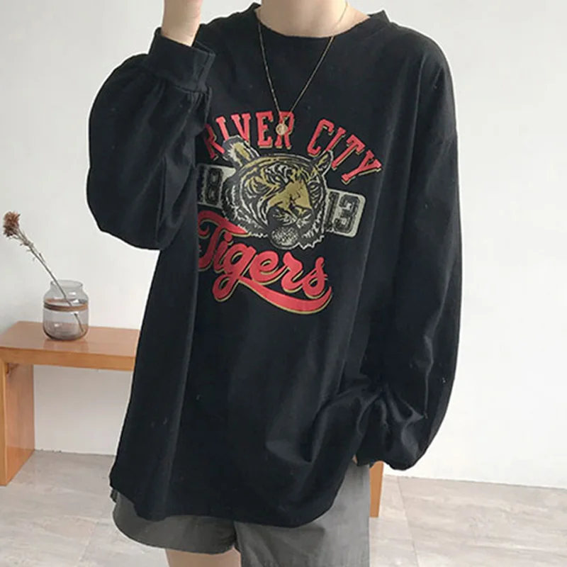 Осенняя Женская Повседневная футболка большого размера Harajuku с длинным рукавом, забавные женские футболки с рисунком, черная длинная уличная женская футболка|Футболки| | АлиЭкспресс