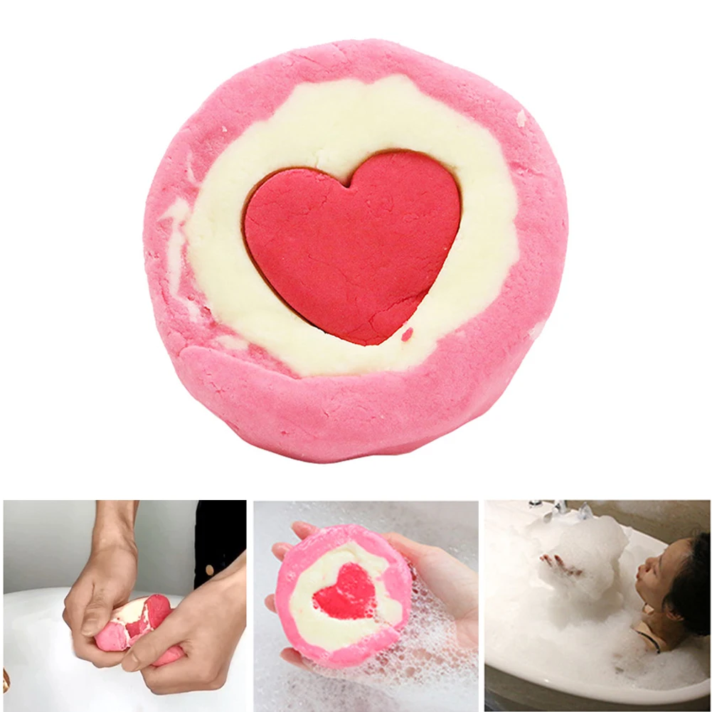 Пузырьковые соли для ванны в форме сердца, ароматизированные розы, эфирное масло, купальные бомбы, газированный спа-шарик, увлажняет Отшелу...