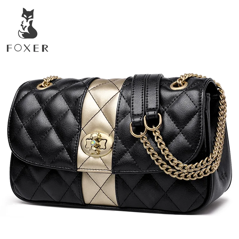 3035.64руб. 50% СКИДКА|FOXER женская сумка мессенджер на цепочке с ромбовидной решеткой, Женская Высококачественная кожаная сумка на плечо, подарок ко Дню Святого Валентина-in Сумки с ручками from Багаж и сумки on AliExpress