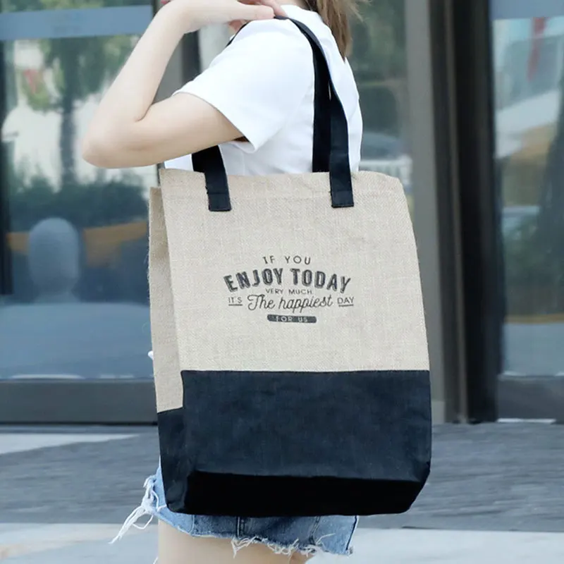 Женская льняная вместительная сумка-тоут, повседневная винтажная Дамская пляжная сумочка с надписью, шоппер на плечо