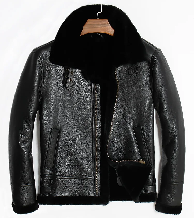 Бесплатная доставка, зимняя шуба из натуральной овчины, шерстяная овчина, теплая кожаная куртка, Мужская Шуба из овчины. Куртки размера плюс черного цвета.-in Пальто из натуральной кожи from Мужская одежда on AliExpress