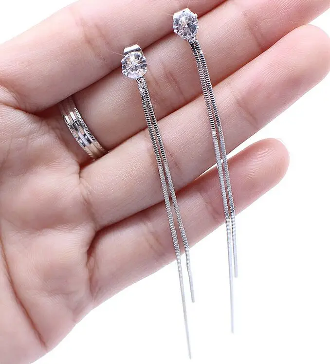 2 цвета лаконичные длинные Кристальные модные серьги с кисточками женские свадебные серьги on AliExpress
