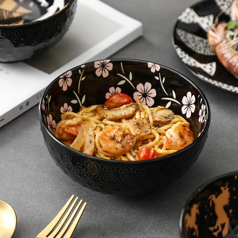 1 шт. 6 дюймов посуда японский ручная роспись рельеф Керамика подглазурного дома ресторана чаша для риса лапши Bowl Ramen миска для супа