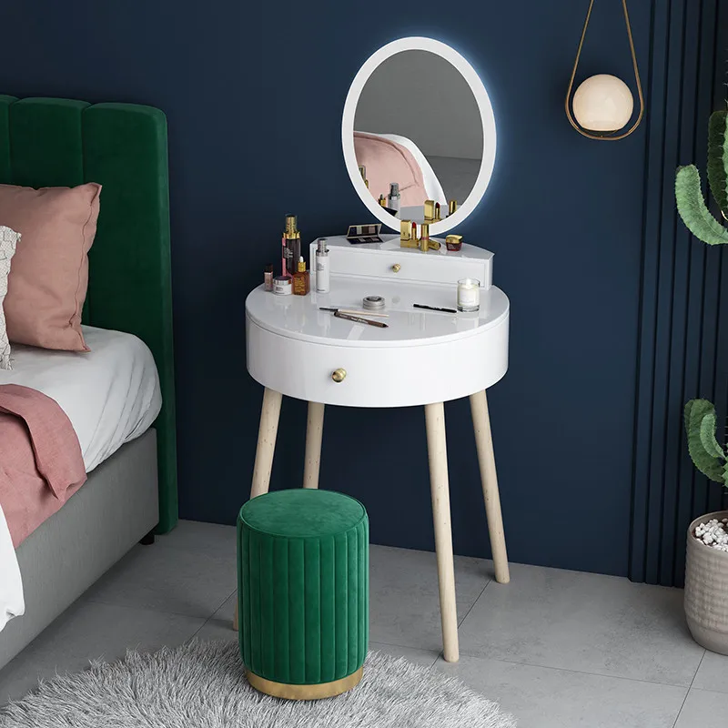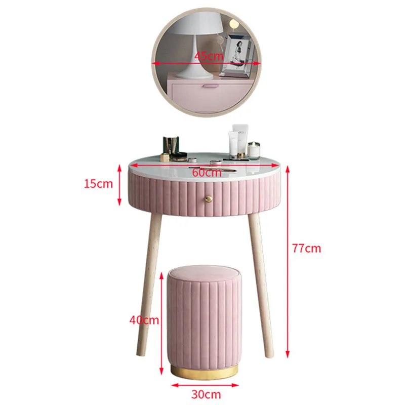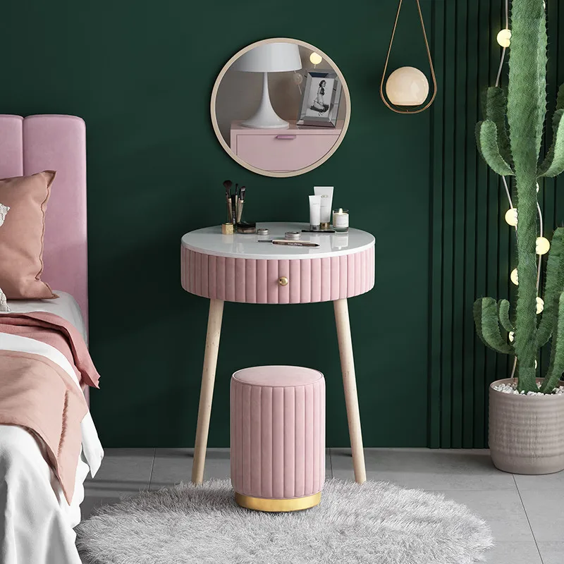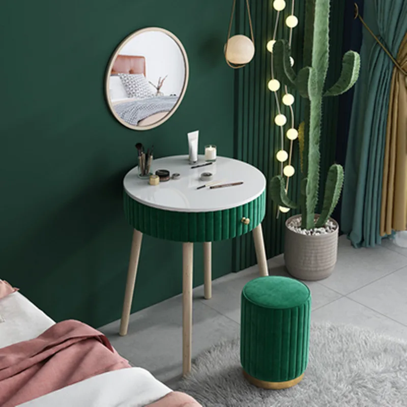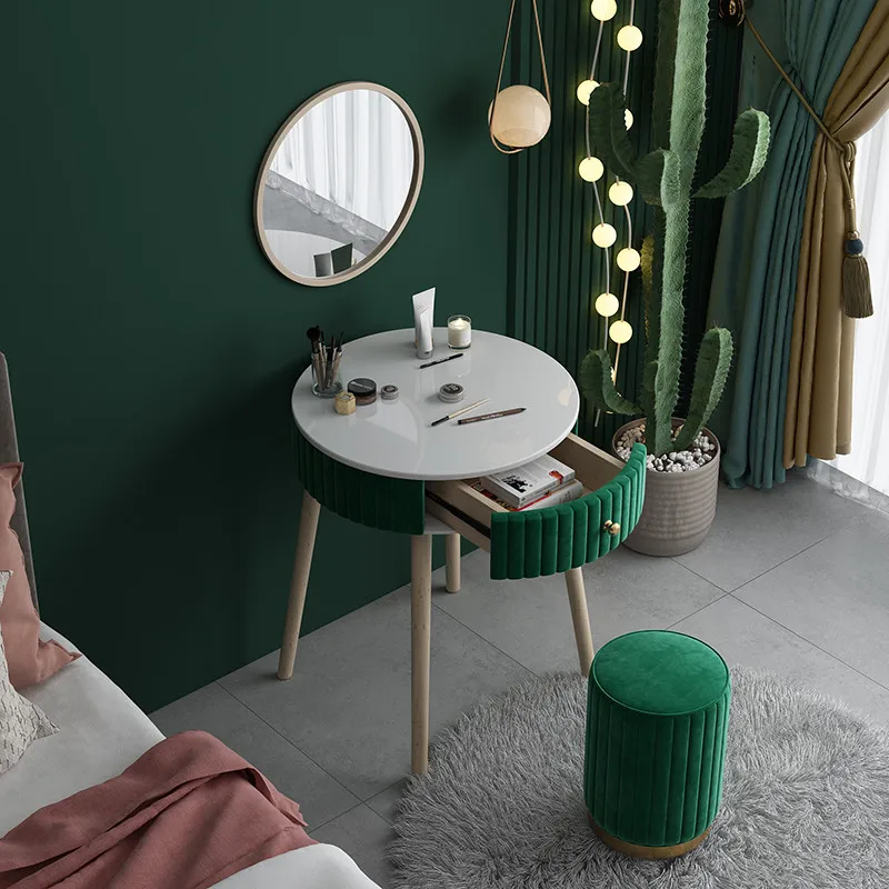 Скандинавский круглый туалетный столик с выдвижным ящиком для спальни, косметический столик, косметический стол, мебель для спальни, стул д...