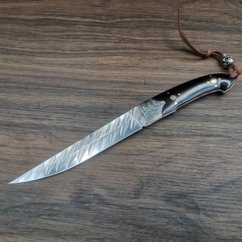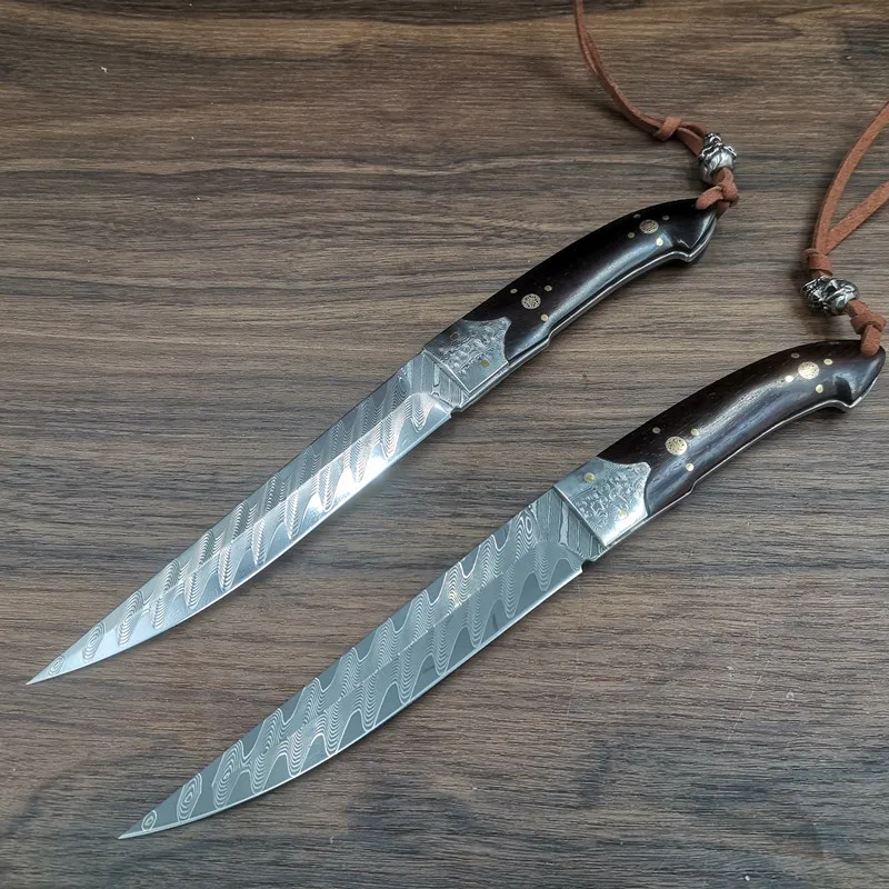 Нож из дамасской стали, тактический прямой Карманный клинок в форме волка со стальной головкой и черной ручкой, для кемпинга и выживания на открытом воздухе|Ножи| | АлиЭкспресс