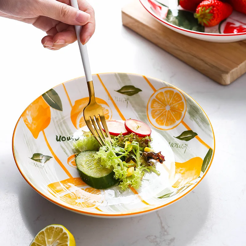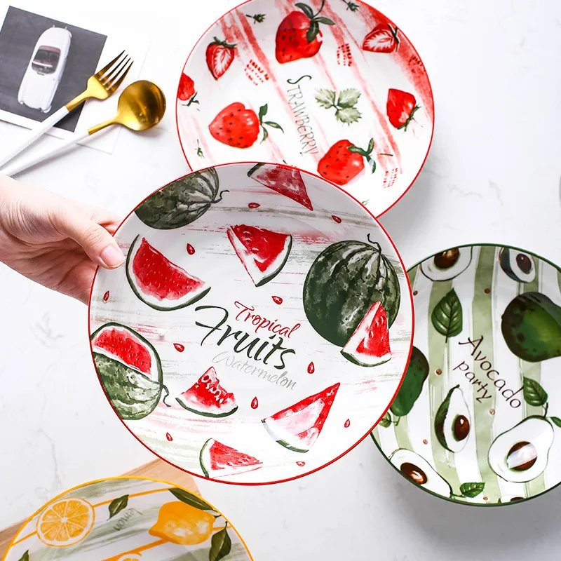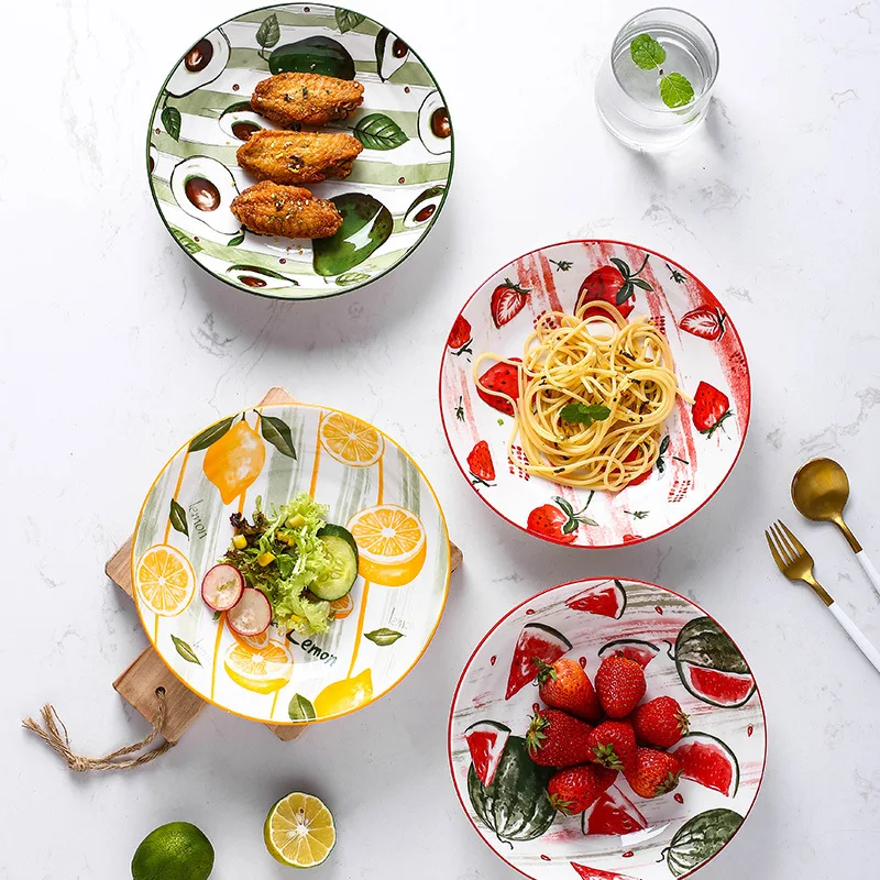 2020 Новинка 1 шт фруктовый стиль керамическая тарелка посуда круглый десерт креативная Салатница посуда ручная роспись фарфоровая тарелка л...
