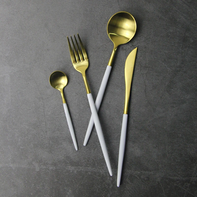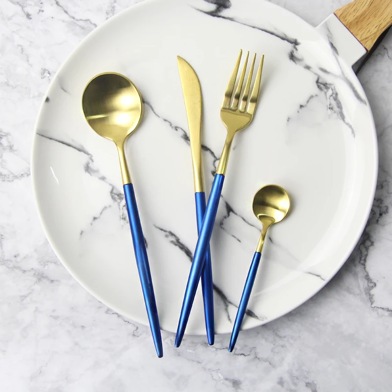 Высокое качество 304 Нержавеющая сталь столовые приборы набор посуды нож набор вилок столовые приборы золотые королевские столовые приборы ...