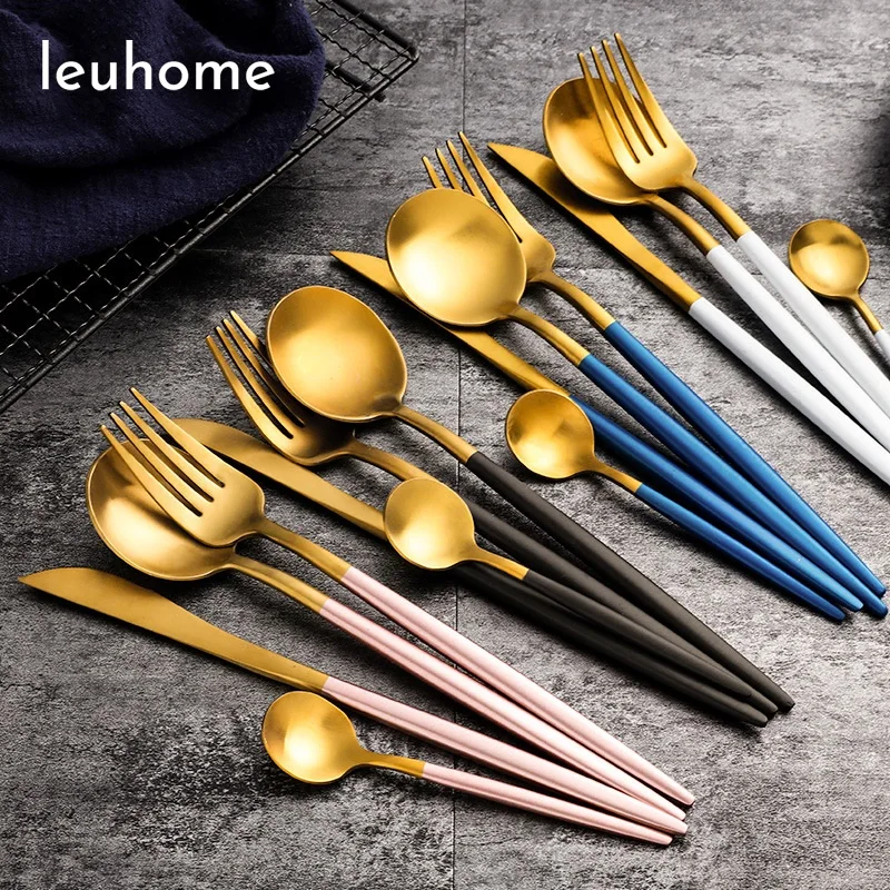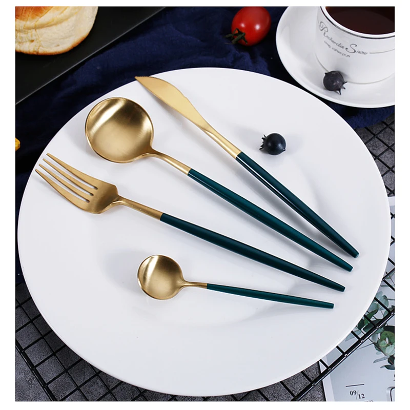 Набор столовых приборов из нержавеющей стали зеленого золота, 5 шт.