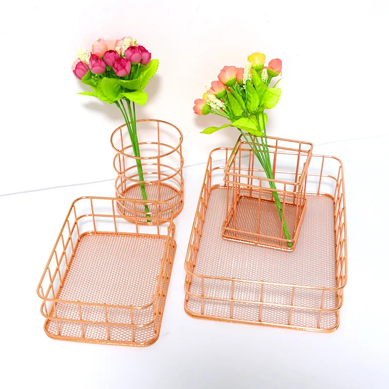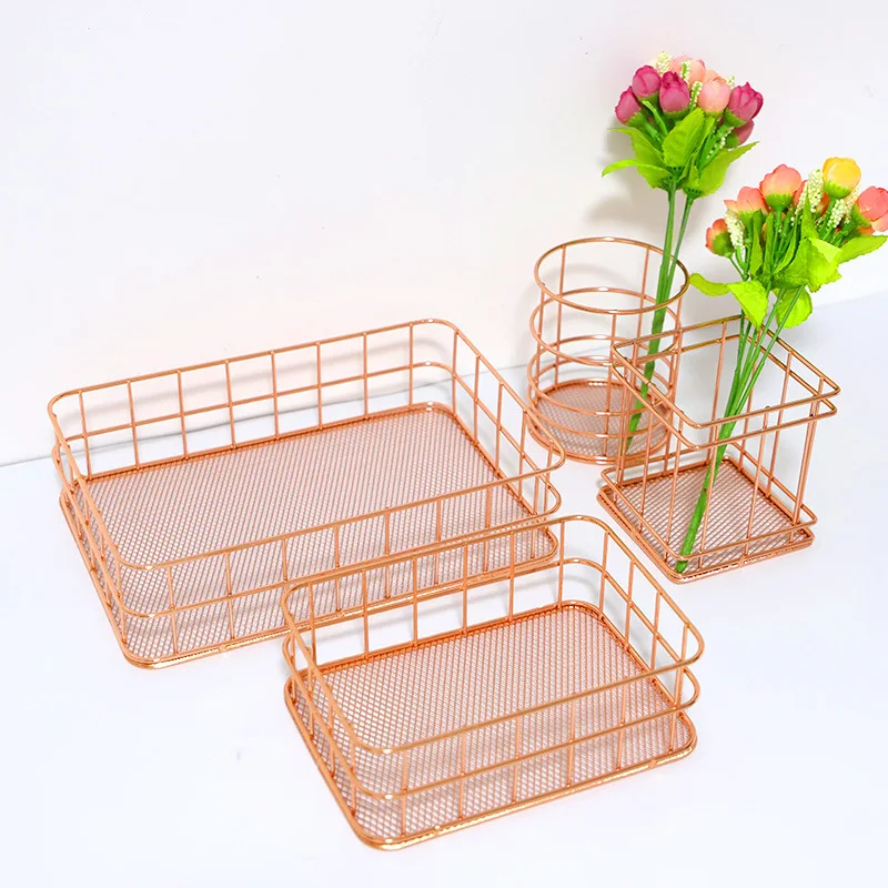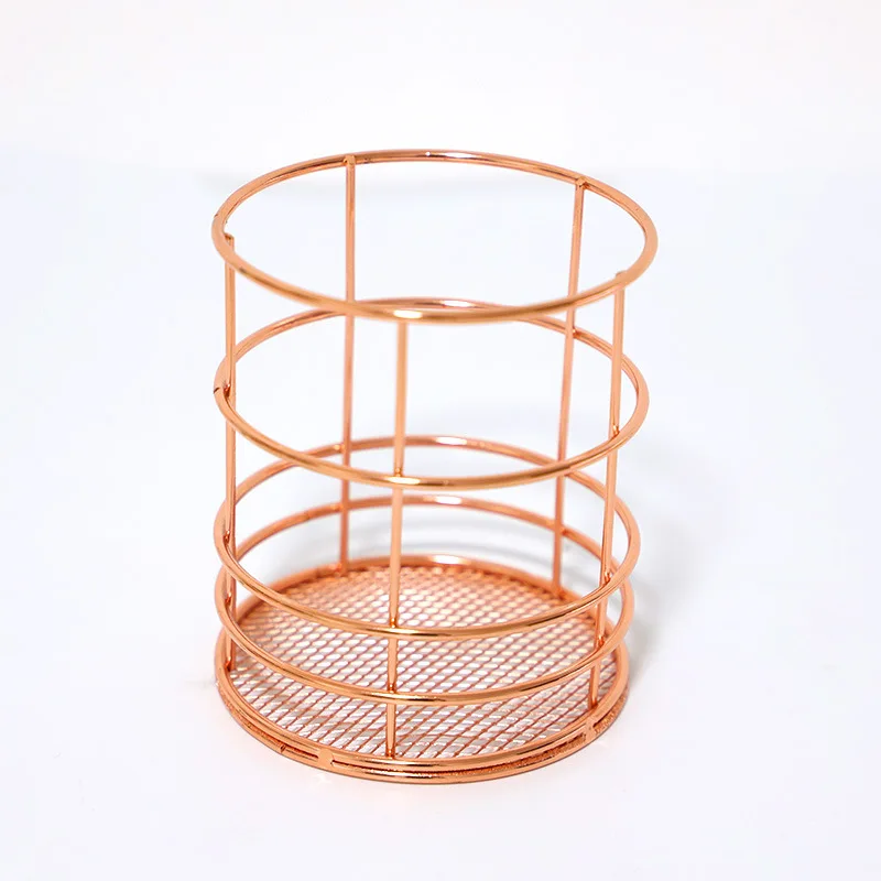 Корзина из кованого железа в скандинавском стиле из розового золота, держатель для ручки, металлическая офисная корзина для хранения канце...