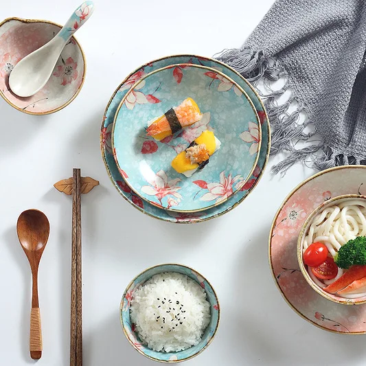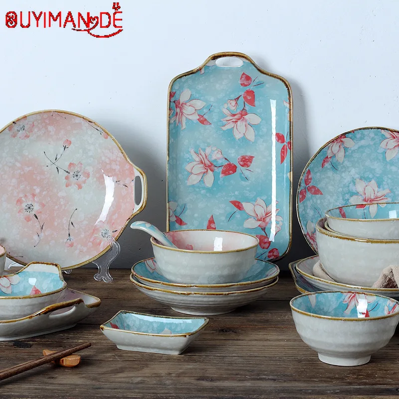 OUYIMANDE в японском стиле ретро цветок магнолии подглазурь керамическая тарелка для еды блюдо ложка лапша суп