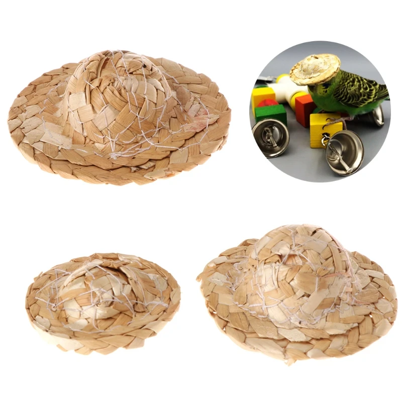 Sombrero tejido de paja hecho a mano, accesorio ajustable para pájaros y loros, 1 unidad|Columpios de aves| - AliExpress