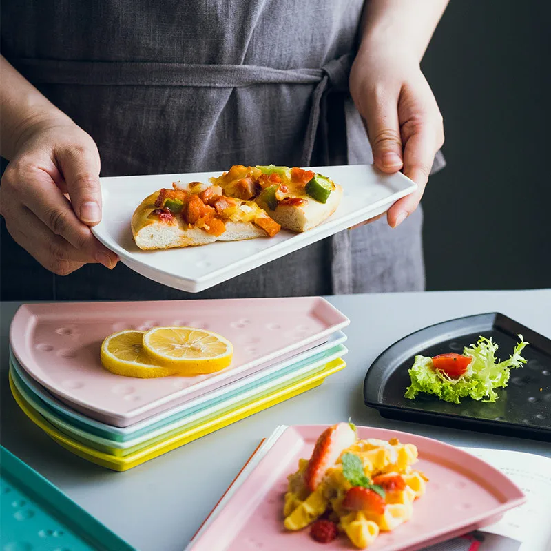 Plato de cerámica nórdico para Pizza, vajilla de porcelana creativa para restaurante, postre, pastel, horneado de queso, plato Irregular para aperitivos de frutas|Fuentes y platos| - AliExpress