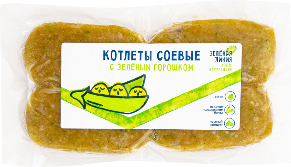 Купить Котлеты Зеленая линия соевые с зеленым горошком 260г с доставкой на дом по цене 89.90 руб в интернет-магазине "Перекрёсток Впрок"