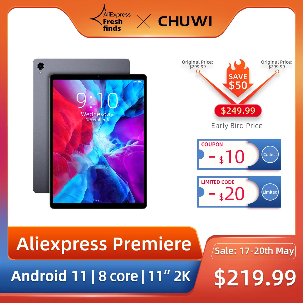 [Мировая премьера] планшетный ПК CHUWI HiPad Plus, Android 11 ОС, 11 "2K FullView Экран, Octa Core, Mail G72 GPU, 4 Гб Оперативная память, 128 ГБ Встроенная память