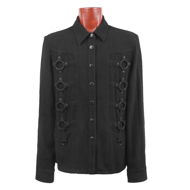 Мужская футболка с длинным рукавом, черная винтажная металлическая футболка с железным кольцом