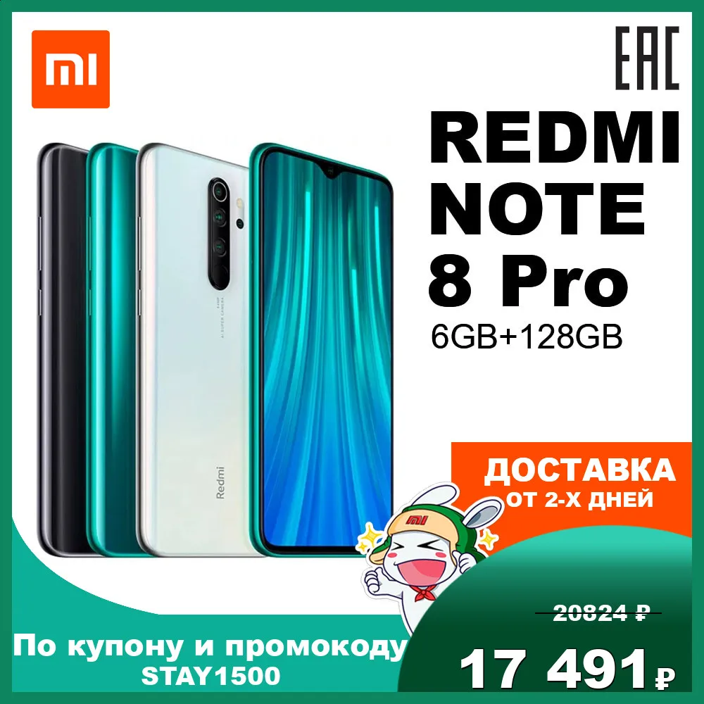 Redmi Note 8 Pro 6GB+128GB Mobile phone smatrphone Miui Android Xiaomi Mi Redmi Note 8 Pro Note8Pro 8Pro 128Gb 128 Gb 4500 mAh 64 mp 64mp MediaTek Helio G90T 6,53" NFC IPS 25530 25529 25528 25980