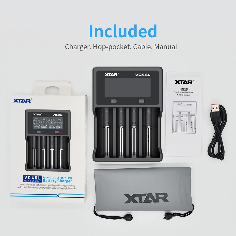 Зарядное устройство XTAR VC4SL QC3.0, быстрое зарядное устройство USB Type-C, быстрая зарядка аккумуляторов AAA AA, зарядное устройство 21700 Liion 18650 VC4S L