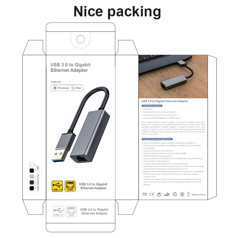 USB Ethernet адаптер 1000 Мбит/с, сетевая карта USB 3,0 к USB RJ45 Lan для ПК Windows 10 Xiaomi Mi Box 3/S Nintendo Switch Ethernet, Наслаждайся ✓Бесплатная доставка по всему миру! ✓Предложение ограничено по времени! ✓Удобный возврат!