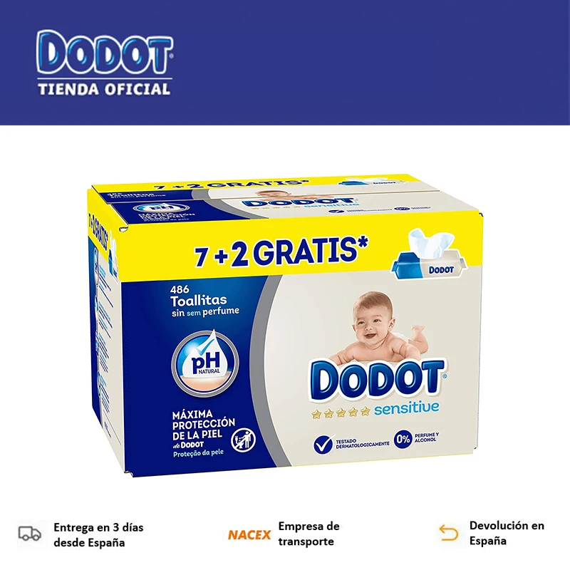 Влажные салфетки Dodot, 486 детских влажных салфеток, 9 упаковок по 54 шт., очень толстая и мягкая текстура, без духов