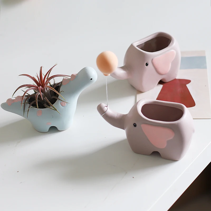 Креативный цветочный горшок для растений, керамические горшки для цветов, мультяшный слон, динозавр, семейный милый домашний декор