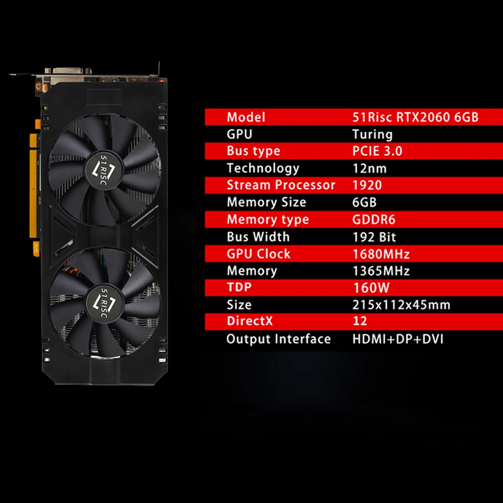 Видеокарта 51RISC GeForce RTX 2060super Gaming 8 Гб GDDR6, игровая видеокарта RTX 2060s для ПК