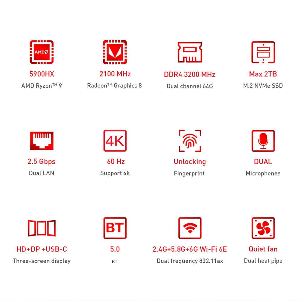 Мини-ПК Beelink GTR5 Wifi6E 5900HX, 2022 ГБ, 1 ТБ, 4K