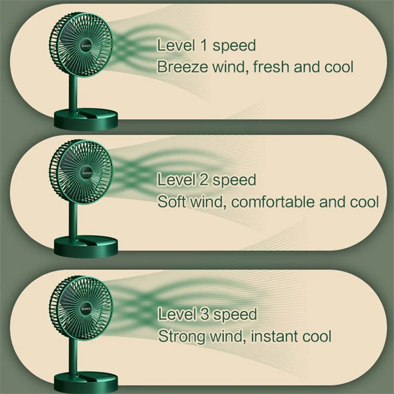2000mah Portable Fan Rechargeable Mini Folding Telescopic Floor Low Noise Summer Fan Cooling For Household Bedroom