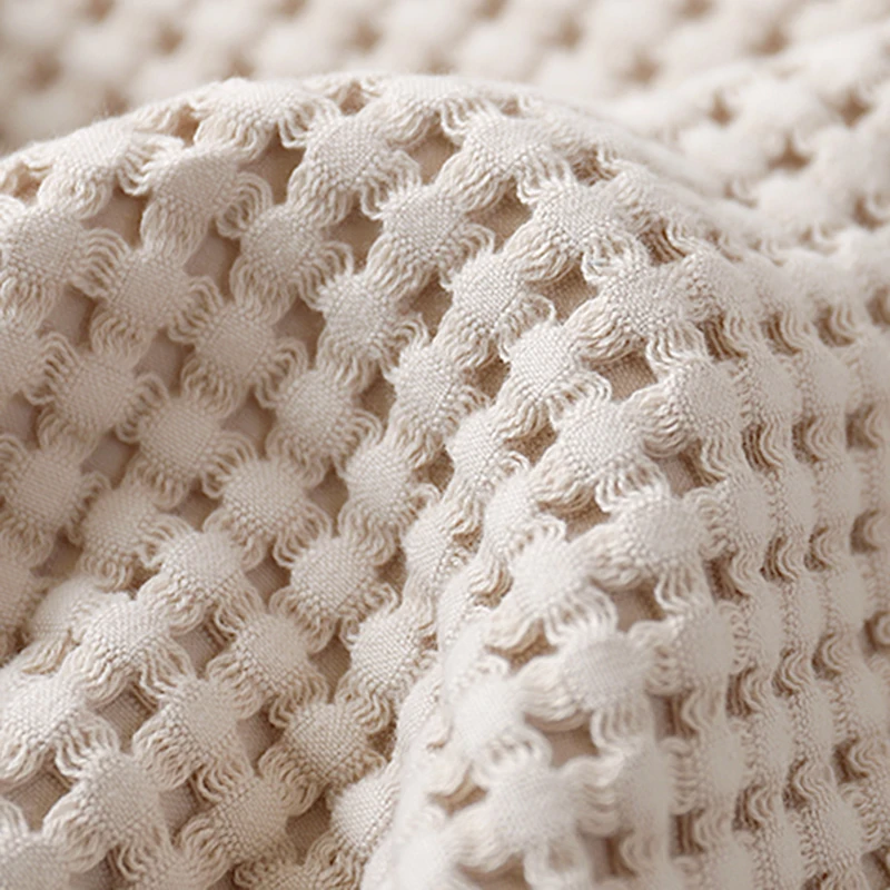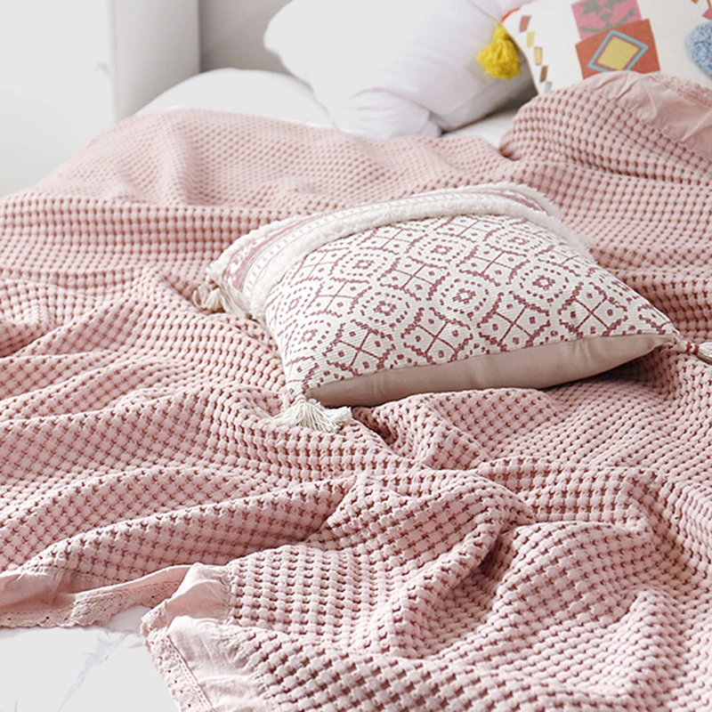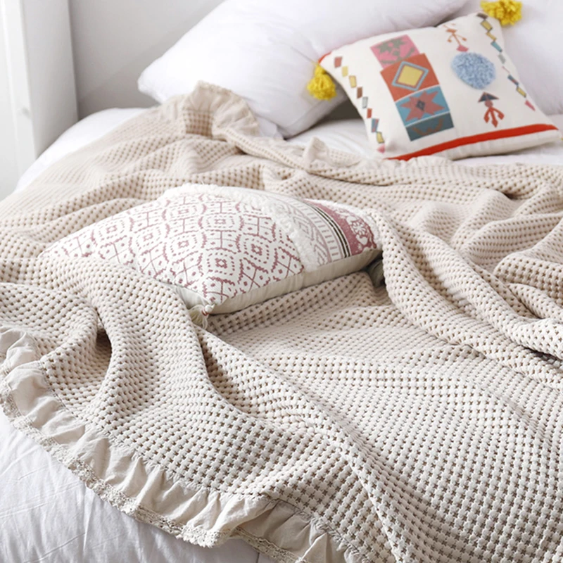 Manta de punto a cuadros para el hogar, 100% algodón, suave, grano de maíz, gofrado en relieve, con volantes, cálida, a cuadros, para verano