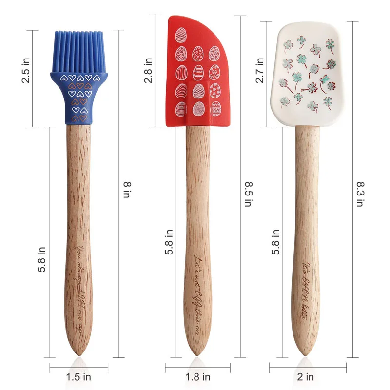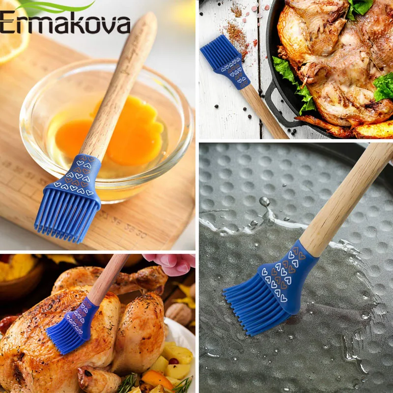 ERMAKOVA ESPÁTULA de silicona larga, cepillo para hornear con mango de roble saludable, juego de utensilios de cocina, 3 uds.
